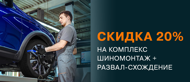 Весь апрель профессиональный шиномонтаж в комплексе с развал-схождением со скидкой 20%.